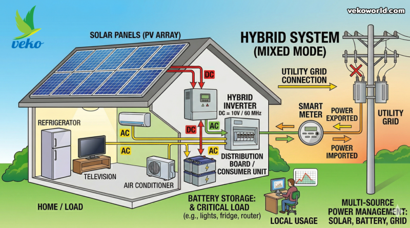 On-Grid Solar Cell คือการเชื่อมต่อระบบผลิตไฟฟ้าจากแสงอาทิตย์เข้ากับระบบไฟของการไฟฟ้าโดยตรง โดยไม่ต้องใช้แบตเตอรี่ หัวใจสำคัญคือการเปลี่ยนไฟกระแสตรง (DC) จากแผงโซล่าเซลล์ให้เป็นไฟกระแสสลับ (AC) เพื่อใช้งานร่วมกับเครื่องใช้ไฟฟ้าในบ้าน 1. อุปกรณ์หลักในระบบ 2. ขั้นตอนการต่อวงจร ฝั่ง DC (จากแผงมาหา Inverter) ฝั่ง AC