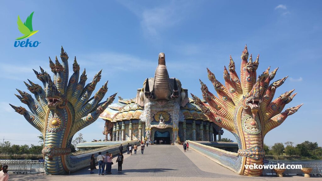 วันรุ่งขึ้นเรามีแผนไปเที่ยววัดบ้านไร่ อำเภอด่านขุนทด จังหวัดนครราชสีมา ห่างจาก อำเภอเมืองที่เราอยู่ 60+ กิโลเมตรเห็นจะได้ เอาจริงไม่รู้จะเที่ยวอะไรที่อำเภอเมือง เลยไปวัดหลวงพ่อคูณ พระเกจิอาจารย์ชื่อดังโคราช ตอนแรกหา google map จะแวะทานอาหารก่อนไปที่วัด ไปถึง10โมงเช้า แต่ร้านสเต๊กยังไม่เปิดเลยขอเข้าห้องน้ำสักหน่อย ฮา งั้นเราไปวัดเลยละกัน หาอะไรทานแถวนั้น ไปถึงก็หิวแล้ว เดินดูร้านสักพักก็เลือกทานอาหารร้านค้าในวัดนั้นเลย ทานเสร็จเราก็เดินเข้าไปในวัด มีช้าง2เชือก โยกไปโยกมาอยู่ เราก็เดินเลยเข้าไปก่อน ในวัดจะมีอาคารรูปช้างอยู่ตรงกลาง มีน้ำล้อมรอบ ทางเดินเข้ามีพญานาคสองฝั่ง เราก็เดินเข้าไปดูมีศิลปะให้ดูมากมาย ภายในอาคารนั้น น่าจะมีความหมายหลายอย่างเลยทีเดียว มีทางขั้นด้านบน และ มีชั้นใต้ดินด้านล่าง ซึ่งมีศิลปะที่ถ่ายทอดเรื่องราวไว้มากมาย น่าจะมีความหมายภายในศิลปะเหล่านั้นครับ ชั้นใต้ดินมีสัตว์ในนิยายหลายอย่าง เช่น มังกร เต่า พญานาค จะออกแนวปติมากรรม ถ้าขึ้นไปชั้นบน จะเป็นภาพวาด และถ้าขึ้นไปบนสุดจะเป็น รูปปั้นหลวงพ่อคูณ กับ รูปปั้นพระพุทธเจ้า อยู่บนสุด เป็นสถานที่ท่องเที่ยวที่น่าไปเยี่ยมชม