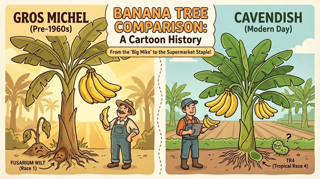 | หัวข้อเปรียบเทียบ | กล้วยหอมทอง (Gros Michel) | กล้วยคาเวนดิช (Cavendish) |