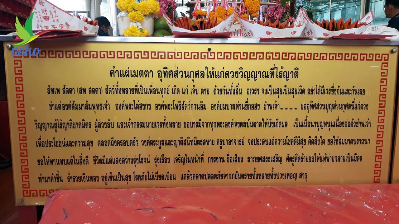 โดยมีคำแผ่เมตตา ตามป้ายที่แสดงที่ด้านหน้าองค์พระไต้ฮงกง
